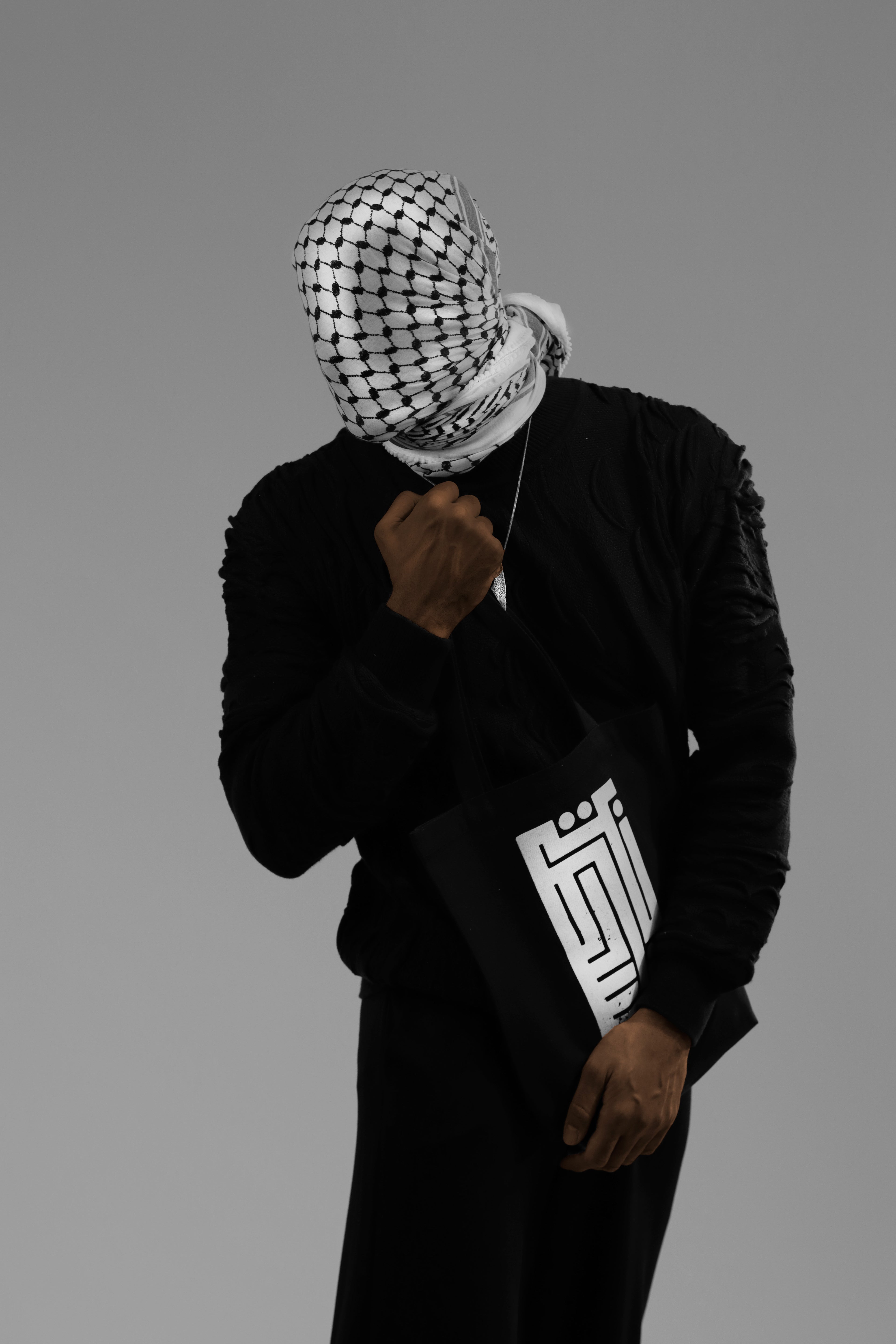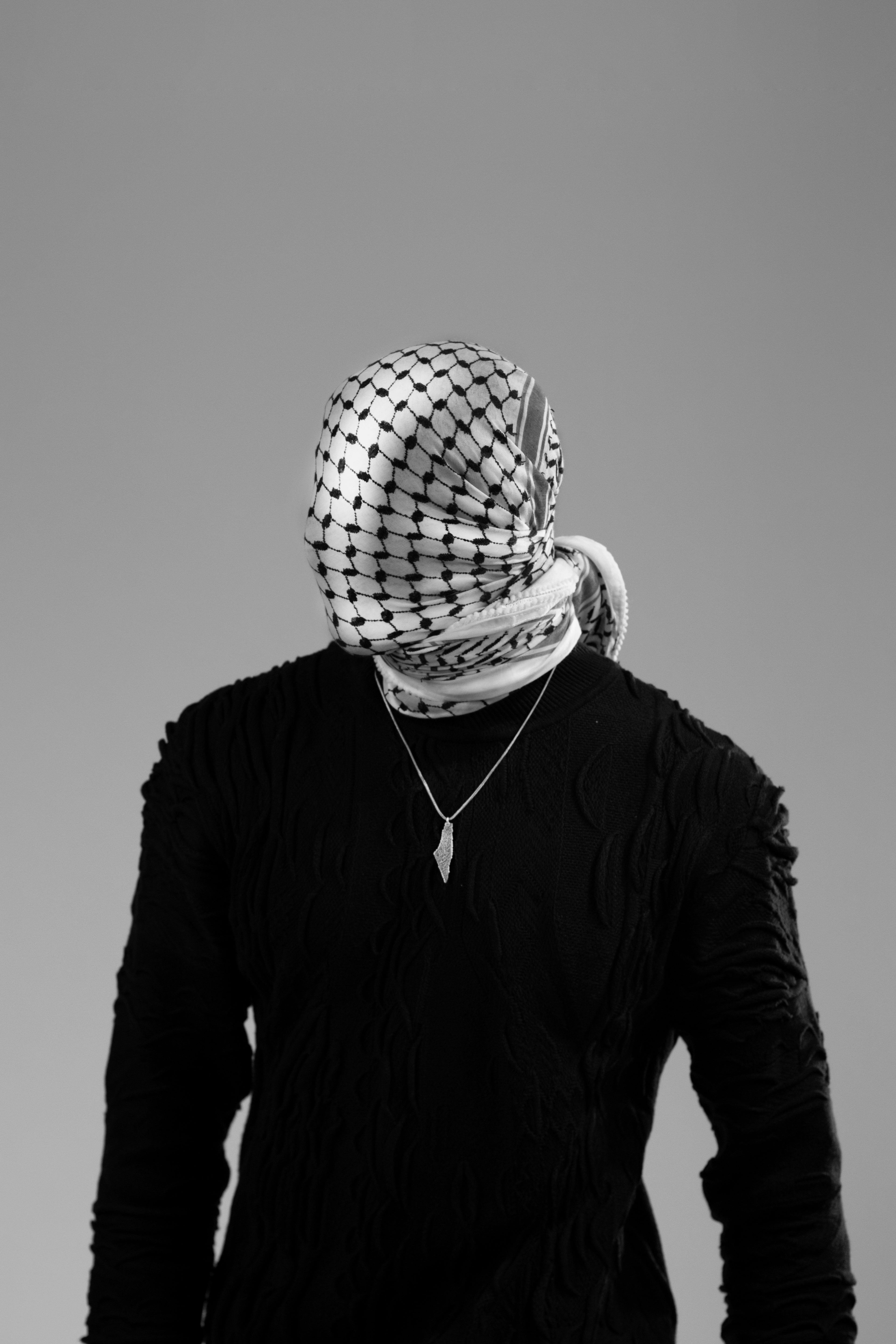 Wearing the story of a people on his face: the keffiyeh.