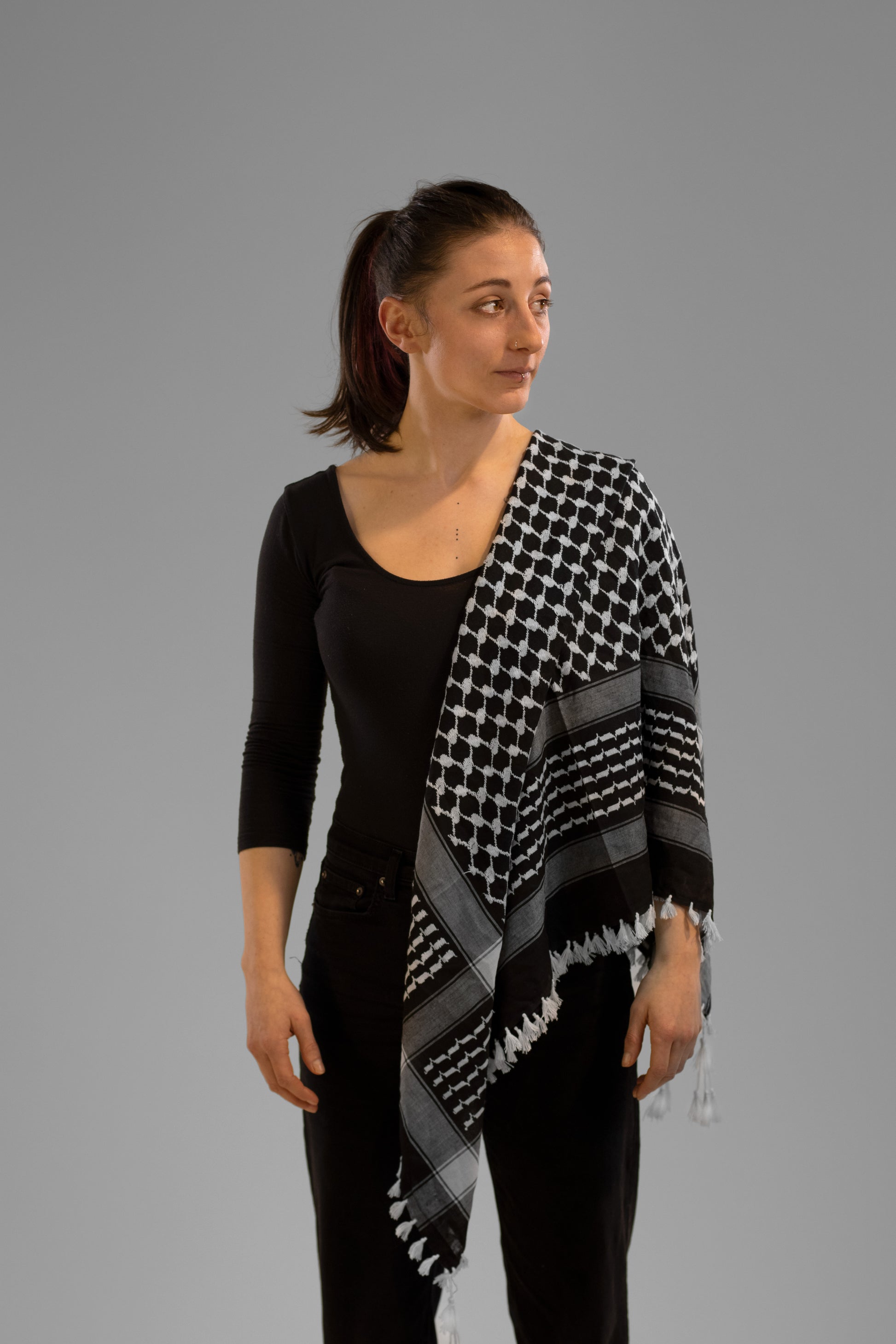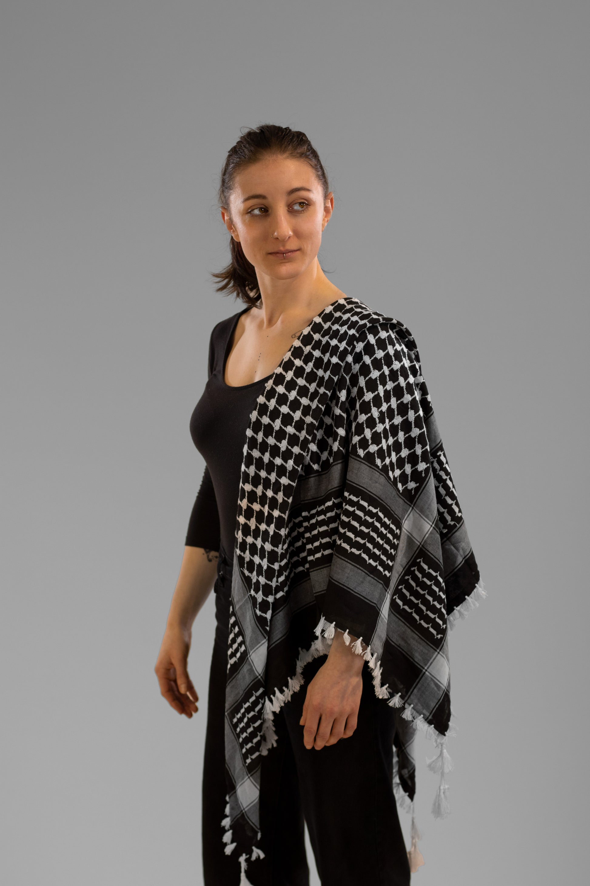 The kufiya symbolizes Palestinian heritage and resilience, often worn as a statement of solidarity with the Palestinian cause. Over time, it has become an emblem of resistance and national identity, transcending its practical use as protection against the desert sun and wind. Worn by people worldwide, the kufiya is a powerful symbol of unity, resistance, and cultural pride.