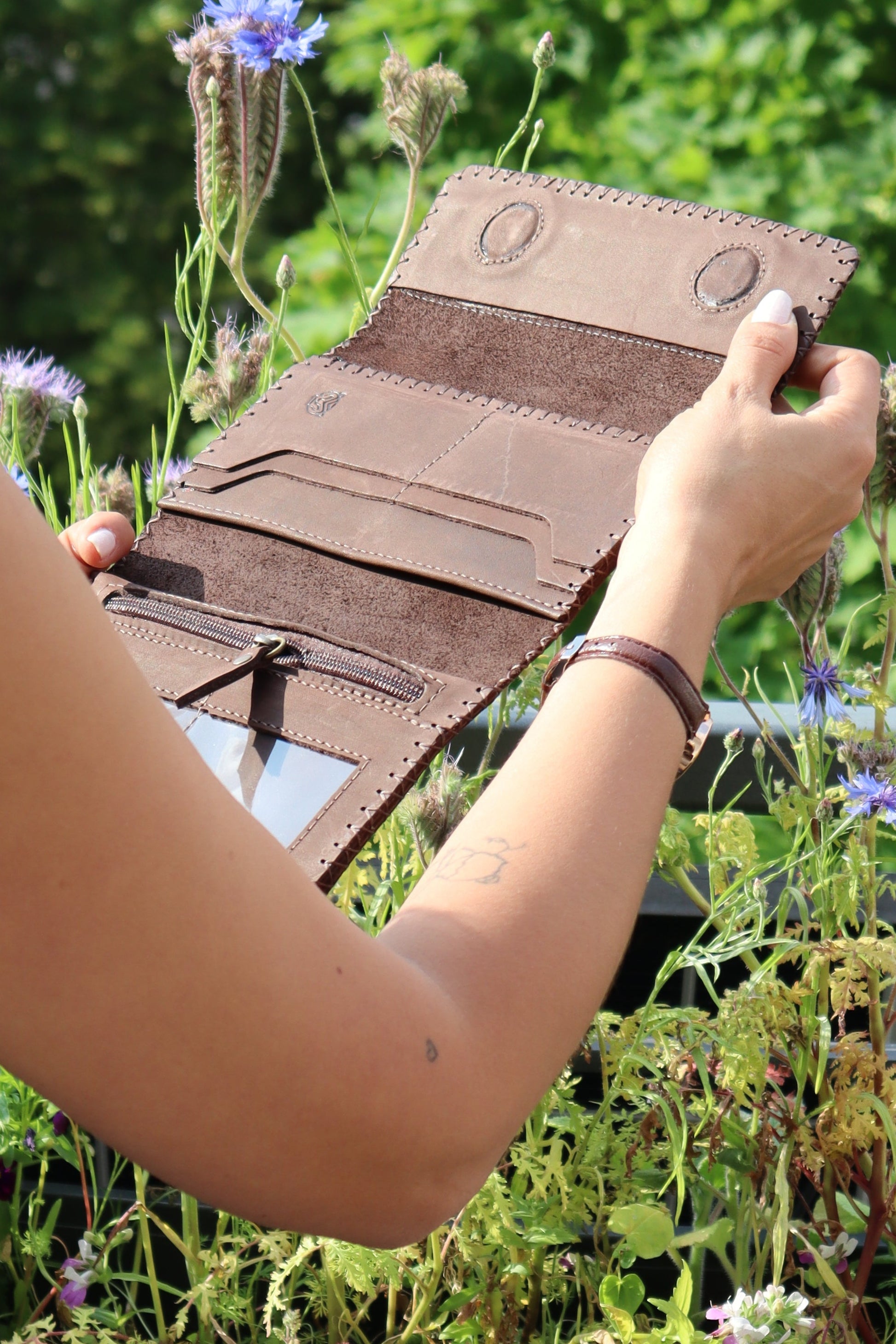 This wallet is crafted to hold all your essentials in sleek style, handmade from genuine Leather by skilled Palestinian artisans From Tiger Leather.